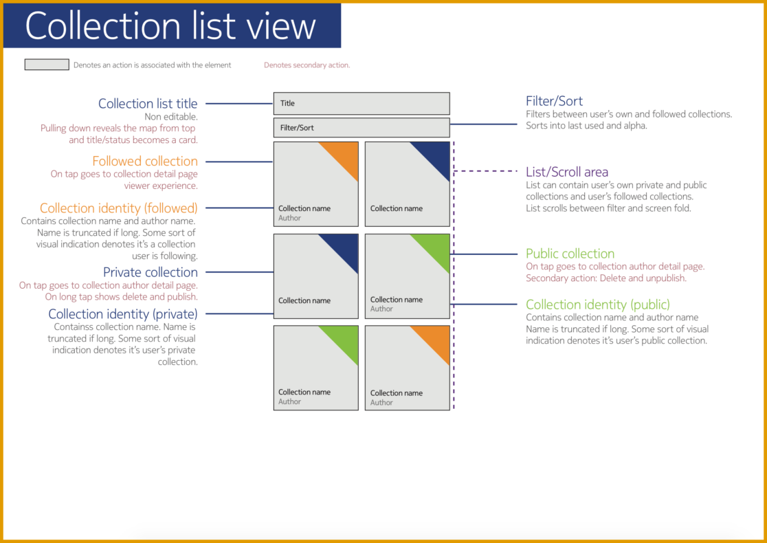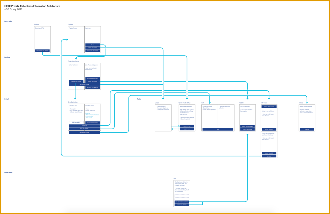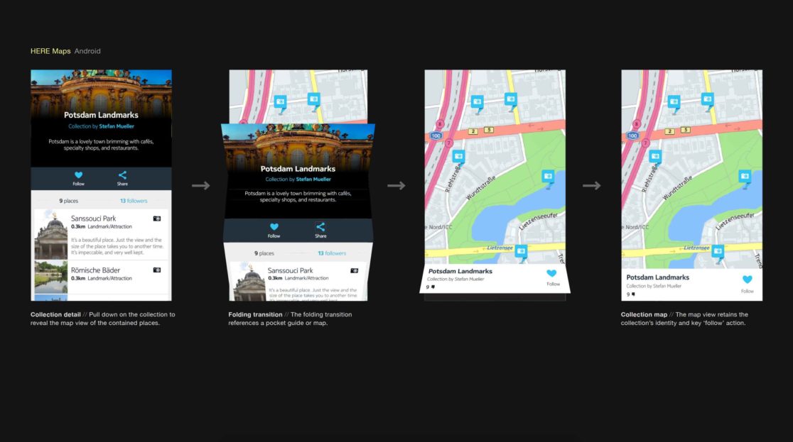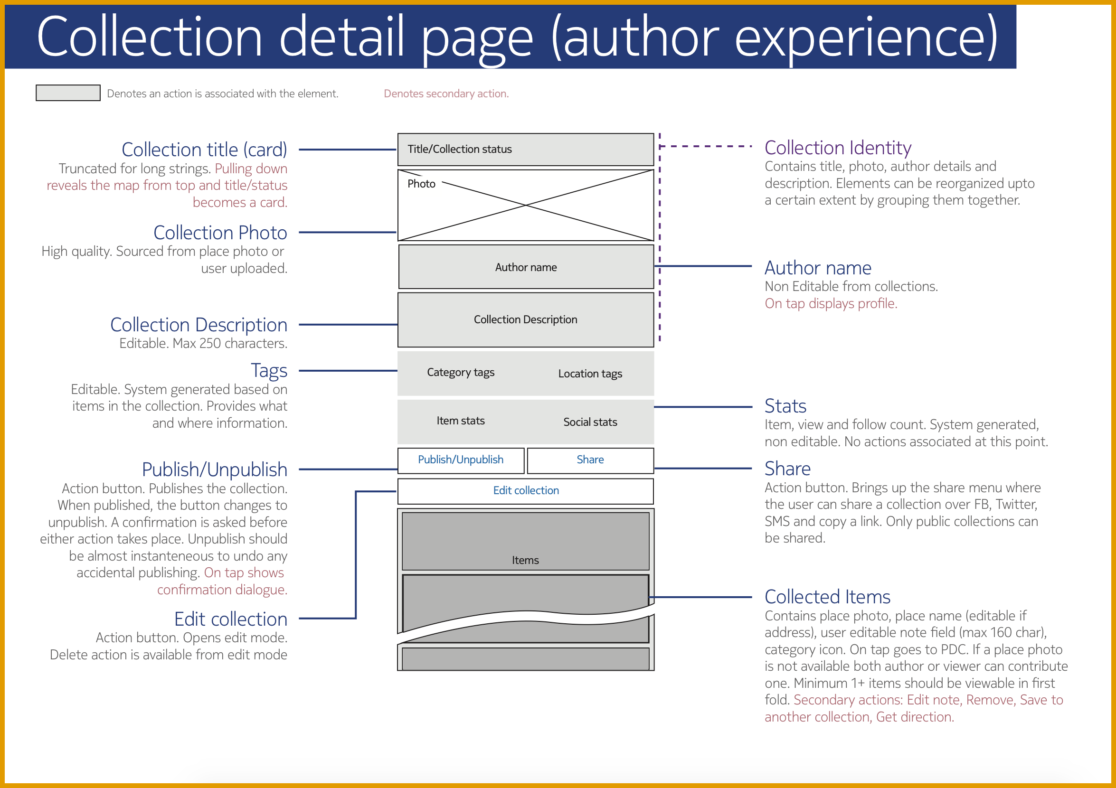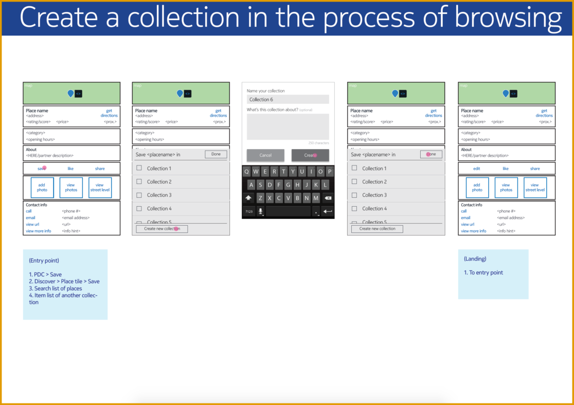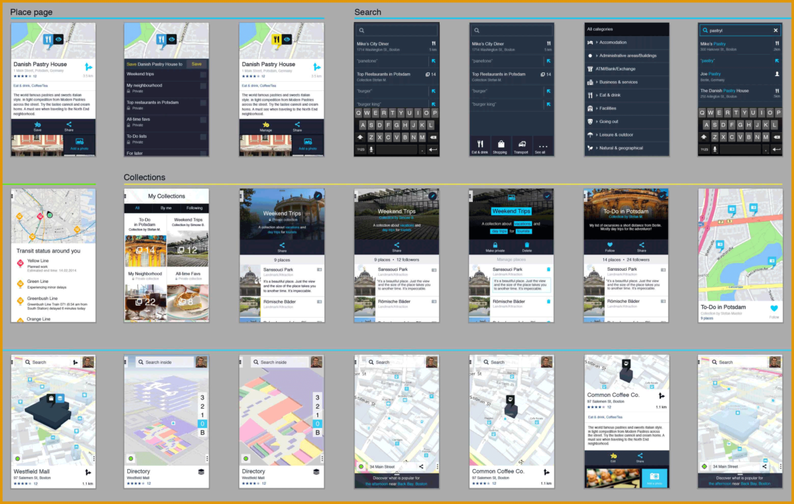 Collections was designed firstly from the need to plan and explore places and further to remember and organize explored places one might stumble upon, by chance or by choice. Collection is a medium to make location experiences personalized and socially relevant.